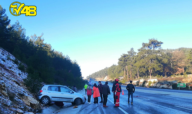 Milas-Yatağan karayolu, Kozağaç mevkiinde zemin adeta buz pistine döndü.
