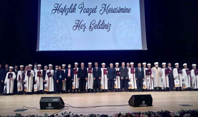 Hafızlığını tamamlayan öğrencilerin icazet merasimi toplantısında bulunmaktan mutluluk duyduklarını anlatan İlçe Müftüsü Özmet, "Ortaokul öğrencilerimiz derslerinin yanında yüce kitabımız Kur'an-ı Kerim'i de ezberledi. Hocalarının gözetiminde sıkı bir çalışmayla hafızlık mertebesine ulaştı. Başta öğrenci velilerimiz olmak üzere hafızlarımızı yetiştiren hocalarımızdan Allah razı olsun" dedi. Konuşmaların ardından hafızlar Süleyman Sami Kaftan, Abdülkuddüs Öztürk, Ahmet Abdullah Işık, Ahmet Recep Karahan, Ahmet Seyit Soyuçok, Albaraa Elgabry, Ali Said Akçakoca, Burak Bircan, Ebubekir Latif Merpez, Emirhan Saraç, Emre Soğancı, Esat Emir Selek, İbrahim Fuat Çelikoğlu, Kerem Aydoğan, Muhammet Emin Şama, Muhammet Enes Avcı, Şerif Ahmet Dursun, Yusuf Emre Yalçın ve Ziyanur Enes Akan'a hafızlık icazet belgeleri ve hediyeleri törene katılan protokol üyeleri tarafından verildi. Törende hafız olan öğrencilerin aileleri duygusal anlar yaşadı. Tören toplu ve hatıra fotoğraflarının çekilmesiyle sona erdi.