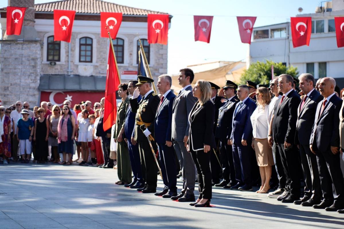 30 Ağustos Zafer Bayramı kutlamaları, sabah saatlerinde Bodrum Kaymakamlığı tarafından Bodrum Belediye Meydanı’nda düzenlenen Atatürk anıtına çelenk sunma töreni ile başladı. Törende, Cumhuriyet Halk Partisi Muğla Milletvekili Süreyya Öneş Derici, Bodrum Kaymakamı Ali Sırmalı, Bodrum Belediye Başkanı Tamer Mandalinci, Garnizon Komutanı Per. Alb. Ayhan Ulutaş, siyasi parti temsilcileri, belediye meclis üyeleri, oda ve STK temsilcileri, gaziler, öğretmenler, öğrenciler ve vatandaşlar yer aldı. Resmî tören kaymakamlık makamında düzenlenen tebrikat töreni ile devam edip Deniz Kuvvetleri Komutanlığı TCSG-106 Sahil Güvenlik Botu’nun ziyareti ile sonlandı.