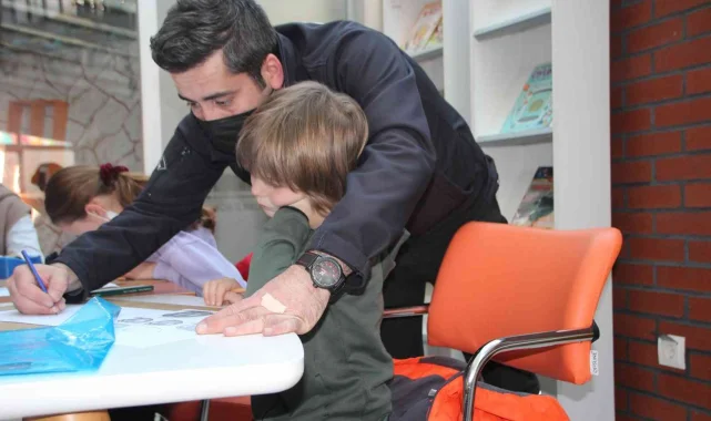 Bilecik Halk Kütüphanesi'nde güvenlik görevlisi olan Mecit Oral, geç fark ettiği resim yeteneğini küçük çocuklara aksettirmek için her perşembe gününü onlara ayırıyor.