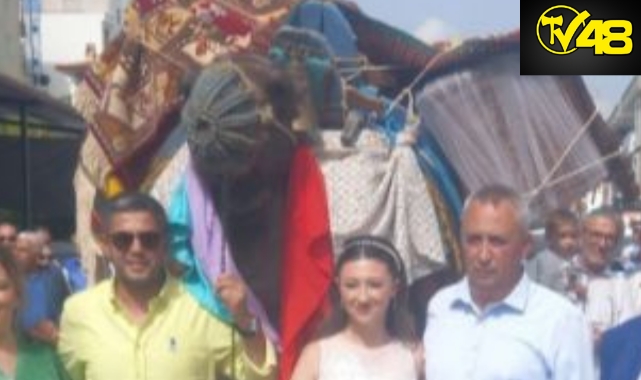 Yatağan'dan Tülay Ali Suat Tekin ailesinin kızlarının çeyiz eşyaları Bodrum'dan dünürleri Belgin Ahmet Denizkıran ailesi tarafından geline gelen eşyalar, 300 kişi ile gelin evine deve sırtında taşındı.