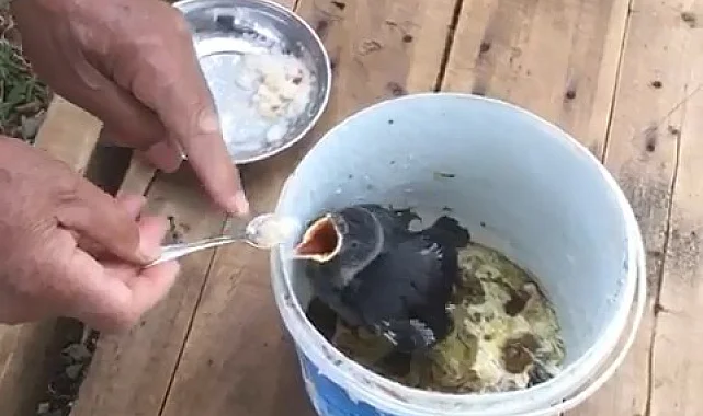76 yaşındaki Akif Amca, yavru kargayı bebek gibi besliyor