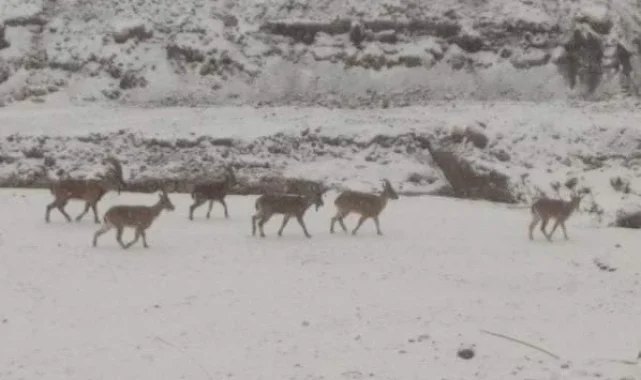 Adıyaman'ın Tut ilçesine bağlı Tepecik Köyü'nde yaklaşık 2 haftadır yağan kar yağışı sonrası kırsal bölgede yiyecek bulamayan dağ keçileri, yerleşim alanına kadar indi. Tepecik Köyü'ne inen dağ keçilerini gören vatandaşlar, cep telefonlarıyla dağ keçilerini görüntüledi. Yerleşim alanında yiyecek arayan dağ keçileri, daha sonra kırsal alana doğru ilerleyerek yerleşim bölgesinden uzaklaştı.