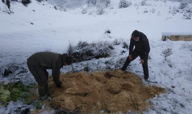 Aç kalan yaban hayvanları için doğaya yem bırakıldı