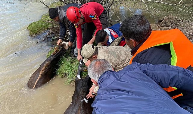 Erzincan'ın Tercan ilçesinde nehir sularının yükselmesi üzerine adacıkta mahsur kalan 16 adet büyükbaş hayvan jandarma ve AFAD ekiplerince kurtarıldı.