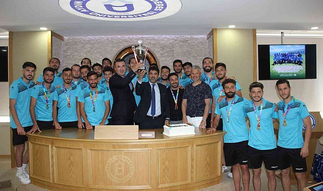 ÜNİLİG Süper Ligi'nde mücadele eden ve Türkiye şampiyonu olan Adnan Menderes Üniversitesi (ADÜ) Futbol Takımı ADÜ Rektörü Prof. Dr. Osman Selçuk Aldemir'i ziyaret ederken, Rektör Aldemir de şampiyon sporcuları tek tek tebrik ederek yemekte ağırladı. Şampiyonluk pastasını futbolcular ve teknik heyetle kesen Rektör Aldemir, "Sizlerle gurur duyuyorum" dedi.
