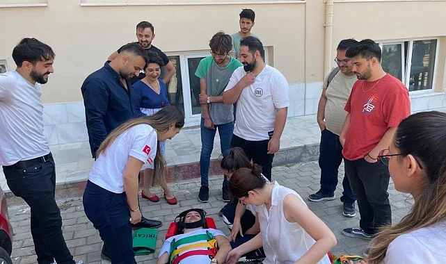 Aydın Adnan Menderes Üniversitesi (ADÜ) Söke Sağlık Hizmetleri Meslek Yüksekokulu İlk ve Acil Yardım Programı öğrencilerine yönelik uluslararası senaryolar eşliğinde hazırlanan 'Acil Olgu Yönetimi' konulu uygulamalı eğitimler yüksekokul bahçesinde yapıldı.