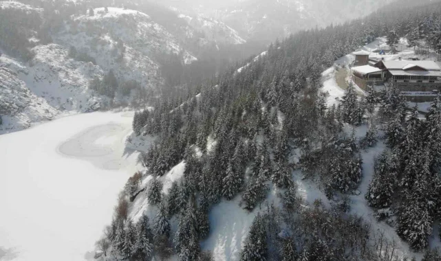 Afyonkarahisar'da yaklaşık 2 haftadan bu yana aralıklarla devam eden kar yağışı sonrası donan Erkmen Baraj Göleti ve çevresinde kar altında kalan ağaçlar adeta bir kış masalı görüntüsü oluşturdu.