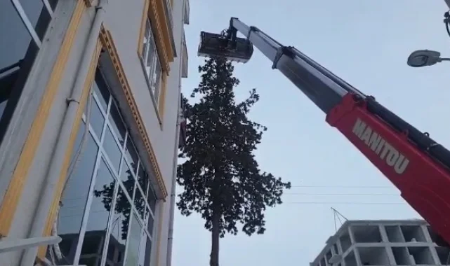 Adıyaman'ın Gölbaşı ilçesinde 2 gün boyunca çam ağacında mahsur kalan kedi, itfaiye ekipleri tarafından kurtarıldı.