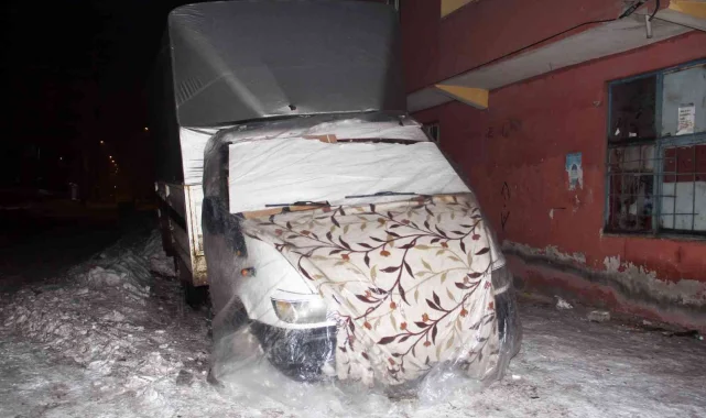Ağrı'da araçlara naylon ve battaniye ile koruma