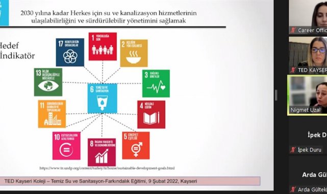 'Temiz Su Sanitasyon' konulu farkındalık eğitimi Abdullah Gül Üniversitesi İnşaat Mühendisliği Bölümü Öğretim Üyesi Prof. Dr. Niğmet Uzal tarafından 9. ve 10. sınıf öğrencilerine verildi. Tüm dünyada yoksulluğa son vermek, iklim değişikliği ile mücadele etmek, nitelikli eğitim, sorumlu üretim ve tüketimi yaygınlaştırmak gibi 17 ana başlıktan oluşan Birleşmiş Milletler (BM) Sürdürülebilir Kalkınma Hedefleri sosyal, kültürel ve ekolojik meselelerin çözümüne odaklanıyor.