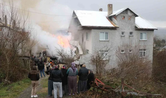 Bolu'da, içerisinde küçükbaş hayvanların bulunduğu ahır ve samanlık alev alev yandı. Köylüler hayvanları yangından kurtarırken, alevler eve sıçramadan söndürüldü.
