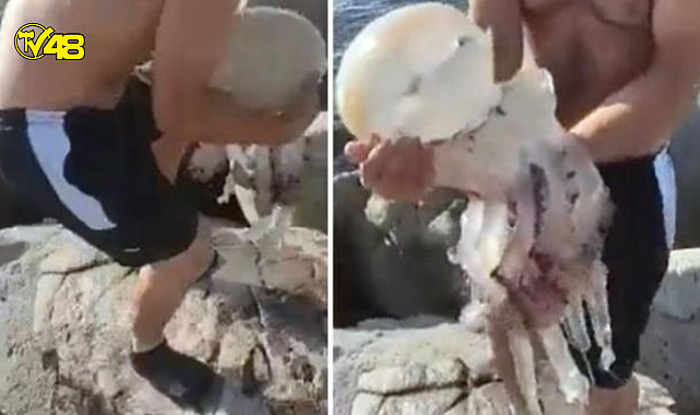 Nerede çekildiği bilinmeyen görüntüde denizden ahtapot sanarak çıkardığı denizanasını kucağına alan vatandaş, "Evet arkadaşlar ahtapot yakaladık, işte görüyorsunuz" diyerek o anlarını kaydeden kamera önünde şov yapmaya başladı. Ancak bir süre sonra canı yanmaya başlayan vatandaş, kucağında tuttuğu şeyin aslında ahtapot değil denizanası olduğunu fark etti. Denizanasını kucağından bırakıp koşar adımlarla denize atlayan vatandaşın o anları izleyenleri güldürdü.