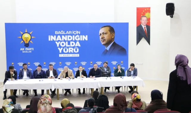 AK Parti Diyarbakır İl Başkanı Muhammet Şerif Aydın, AK Parti Diyarbakır Milletvekilleri Mehmet Mehdi Eker, Oya Eronat, Ebubekir Bal, MKYK üyeleri Suna Kepolu Ataman, Alaattin Parlak, İl Kadın Kolları Başkanı Müzeyyen Kaya, İl Gençlik Kolları Başkanı Ahmed Mahsum Melikoğlu, Bağlar Belediye Başkanı Hüseyin Beyoğlu ve beraberindeki partililer Diyarbakır'ın Bağlar ilçesini ziyaret etti. Bağlar'da sivil toplum kuruluşları (STK) ve kanaat önderleri ile bir araya gelerek sorun ve talepleri dinleyen AK Parti heyeti, ardından AK Parti Bağlar Teşkilatı'nın ana kademe, kadın kolları, gençlik kolları ve belediye meclis üyeleri ile bir araya gelerek 3 kademe teşkilat istişare ve değerlendirme toplantısı gerçekleştirdi. Heyet, daha sonra Vefa Buluşması programında AK Parti'nin kuruluşundan bu yana görev almış olan tüm ilçe başkanları, kadın kolları başkanları, gençlik kolları başkanları, belediye başkan adayları, geçmiş belediye meclis üyeleri, geçmiş dönemlerde görev alan yönetim kurulu üyeleri ile bir araya geldi.