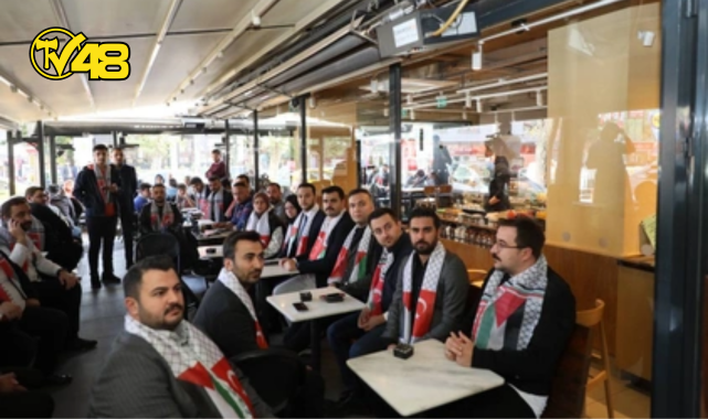AK Parti Gençlik Kolları da Filistin'e destek vermek ve İsrail ile 'destekçilerine' tepki göstermek için, 81 ilde Filistin atkılarıyla Starbucks şubelerine giderek yarım saat boyunca oturma ve 'yer kapatma eylemi' gerçekleştirdi.