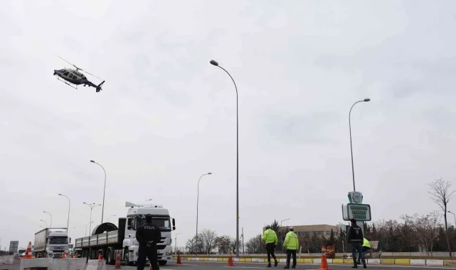 Aksaray İl Emniyet Müdürlüğü, helikopter destekli trafik uygulaması ile karayollarında denetim yaparak kilometrelerce uzaktaki sürücülerin ihlallerini tespit etti.