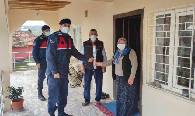Aksaray'da 8 Mart Dünya Emekçi Kadınlar Günü münasebetiyle ev ziyareti yapan jandarma ekipleri kadınlara karanfil vererek günlerini kutladı.