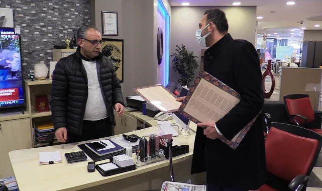 Akşehir Belediyesinden esnafa İstiklal Marşı tablosu armağanı