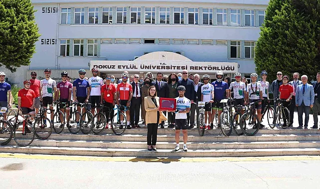 Dokuz Eylül Üniversitesi'nin (DEÜ) İzmir'in kurtuluşunun 100. yıl dönümü etkinlikleri çerçevesinde düzenlediği 'Al Bayrağımızla Geleceğe' isimli bisiklet turuna katılan sporcular, DEÜ Rektörü Prof. Dr. Nükhet Hotar'dan emanet aldıkları şanlı Türk Bayrağını, Buca'daki DEÜ Bayrakbilim ve Türk Bayrakları Müzesine teslim etti.