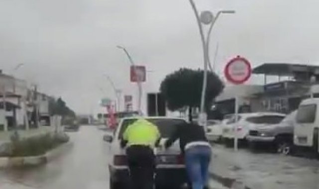 Karşıyaka Mahallesi'nde yolda kalan bir sürücünün imdadına trafik polisleri yetişti. Bir sorun nedeniyle çalışmayan araç trafiği aksatırken bölgede bulunan trafik polisleri otomobili yaklaşık 200 metre iterek trafiğin açılmasını sağladı. Araç sürücüleri trafik polislerine teşekkür ederek, "Polis ekiplerimiz bu soğuk günlerde, ilgileri ile sıcak bir yardımseverlik örneği sergilediler, eksik olmasınlar" dedi.