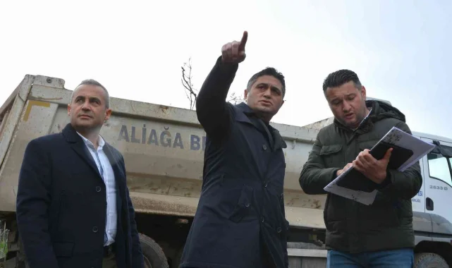 Aliağa Belediye Başkanı Serkan Acar da, Doğa Park proje alanında Fen İşleri Müdürlüğü ekipleri tarafından gerçekleştirilen tesviye ve yol çalışmalarını inceledi, projenin Aliağa'ya hayırlı olmasını diledi.