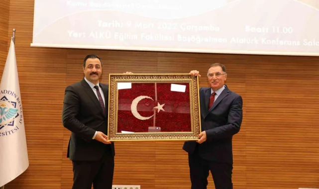 Programın sonunda, ALKÜ Rektörü Prof. Dr. Ekrem Kalan, Kamu Başdenetçisi Şeref Malkoç'a Türk Bayrağı tablosu hediye etti.