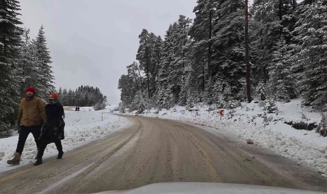 Aniden bastıran kar, kayak merkezi yolunda sürücüleri yolda bıraktı