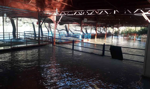 Antalya'da şiddetli yağış ırmak kenarındaki restoranları sular altında bıraktı