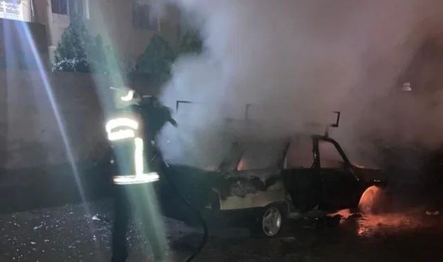 Araç yangını ekipler tarafından söndürüldü