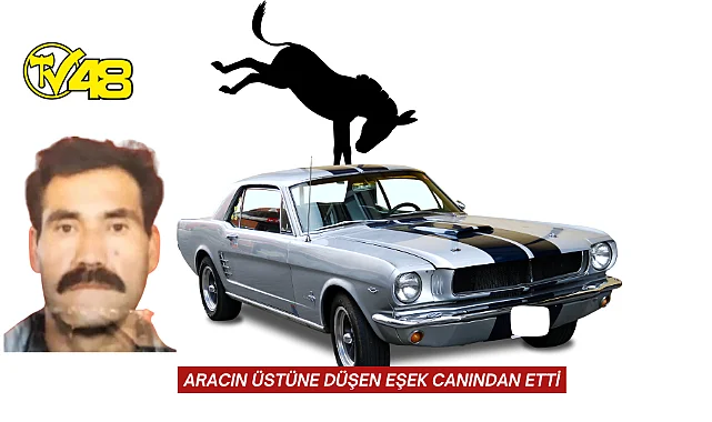 Denizli'de aracın tavanına düşen eşek, ölümüne neden oldu.