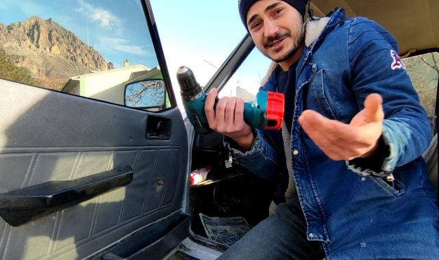 Bulduğu çözümü anlatan Taner Sarı, kış mevsiminde açık kalan camına acil bir çözüm ararken bu fikri bulduğunu ifade ederek, "Bu araç 1989 model dolayısıyla araçta parça kırılmaları yaşanabiliyor. Dün aracımın cam kolu kırıldı. Açık vaziyette kaldı. Kış mevsimini yaşıyoruz. Acilen çözüm üretmem gerekiyordu. Ben de öncelikle pense ile denedim. Uğraştım ama olmadı. Sonra şarjlı matkap fikri aklıma geldi ve denedim. Güzel bir çözüm oldu" dedi.