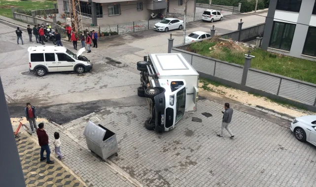 Mersin'in Erdemli ilçesinde hafif ticari araçla çarpışan kamyonet devrildi, sürücüler yara almadan kurtuldu.