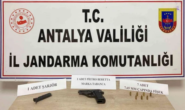 Antalya'nın Aksu ilçesinde Jandarma ekipleri, bir şahsın aracında yaptığı aramada ruhsatsız tabanca ele geçirdi.