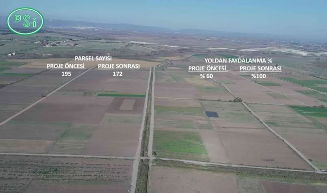 Yol ve su hatlarına cepheli, geometrik şekilleri düzgün yeni taşınmazların oluşturulduğu proje ile üreticilerin yeni parsellerine daha kolay ve kısa yoldan ulaşmalarına, gün içerisinde bir parselden diğer parsele gitmeden aynı taşınmaz üzerinde çalışma fırsatı bulmalarına ve az mâliyetle üretim yapabilmelerine imkân sağlandı.