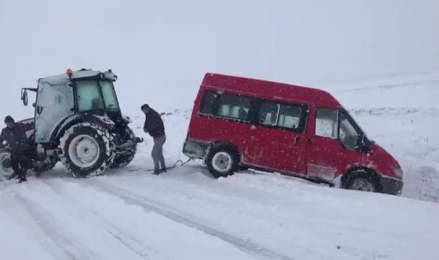 Sabah saatlerinden itibaren yoğun kar yağışının etkili olduğu Ardahan'da sürücüler zor anlar yaşadı. Çıldır'dan Ardahan'a seyreden bir minibüs, kayarak Gölveren köyü yakınlarında yoldan çıktı. Traktör ile bağlanarak kaydığı yerden kurtarılan minibüs tekrar yoluna devam edebildi.