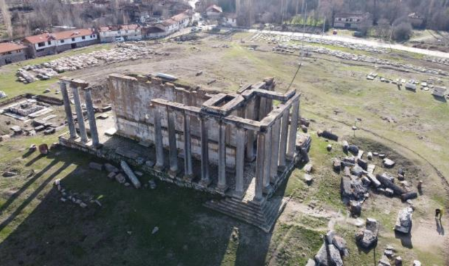 Çavdarhisar ilçesindeki Aizanoi Antik Kenti'ndeki kazı çalışmaları, tarihi M.Ö. 3000'li yıllara dayanan ve tiyatro, stadyum, agora ve Zeus Tapınağı gibi tarihi yapıları ile dönemin metropolislerinden biri olduğu düşünülen antik kentte kazılar, Penkalas Çayı'nda yoğunlaştırıldı. Son kazı çalışmalarında 2 metre 10 santim yüksekliğindeki erkek heykelini korumaya alan arkeologlar, Yunan mitolojisinde aşk tanrısı olarak bilinen "Eros", şarap tanrısı "Dionysos" ve yarı tanrı "Herakles"in heykel başlarını gün yüzüne çıkardı.