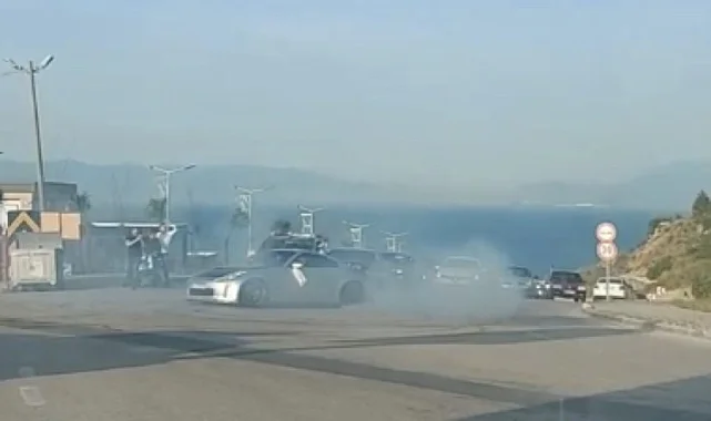 Olay, Mudanya ilçesi Yıldıztepe Mahallesi'nde meydana geldi. Edinilen bilgiye göre, düğün konvoyunda bulunan spor otomobil, trafiğin ortasında diğer araçlara aldırış etmeden drift yaptı. Onlarca aracın beklemesine aldırış etmeden asfaltta dumanlar çıkararak dönmeye tehlikeli hareketler yapmaya başladı. Pişkin sürücü trafiği tehlikeye atarken diğer sürücüler panik dolu anlar yaşadı.