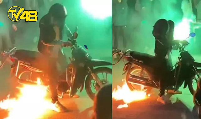 Bağcılar'da asker eğlencesi için toplanan kalabalıkta tehlikeli bir gösteri yapıldı. Kalabalığın ortasında motosiklet tekerine yanıcı sıvı dökülerek yakılan ateş motosiklet sürücüsüne sıçradı. O anlar cep telefonu kamerasıyla kaydedildi.