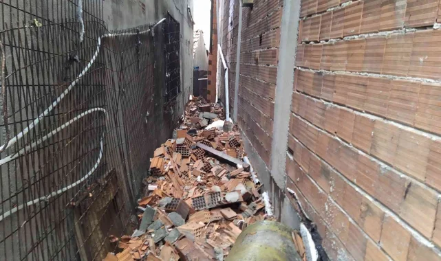 Avcılar'da aşırı rüzgar bir süre önce çıkan yangında hasar gören çatının duvarını yıktı. Duvarın yan taraftaki binanın bahçesine yıkılması nedeniyle vatandaşlar büyük panik yaşadı.