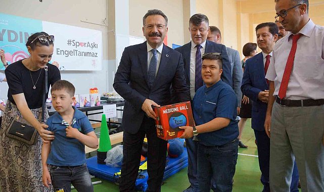 Aydın Valisi Hüseyin Aksoy'un katılımıyla, Mimar Sinan Kapalı Spor Salonu'nda Aydın'daki 11 özel öğretim okulundaki engelli bireylerin spor yapmasına katkı sağlamak amacıyla gönderilen spor malzemeleri düzenlenen programla okullara teslim edildi. Gençlik ve Spor İl Müdürü Cenap Fillikçioğlu, okul öğretmen ve öğrencilerinin de katıldığı programda çeşitli spor branşlarında kullanılmak üzere gönderilen malzemeler okullara teslim edildi.