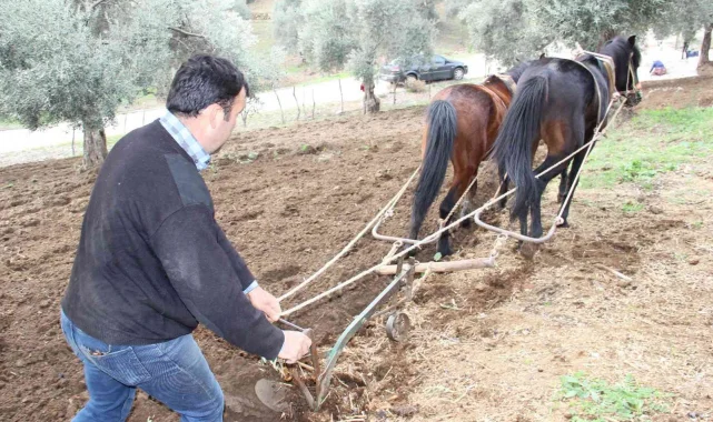 Aydın'da kurak geçen son iki yılın ardından bu yıl mevsim yağışları ile birlikte çiftçiler tarlaya erken indi. Özellikle traktörlerin işlemediği sarp arazileri sabana koştukları atlarla sürüp işleyen çiftçiler, yağışlardan dolayı mutlu olduklarını belirttiler.