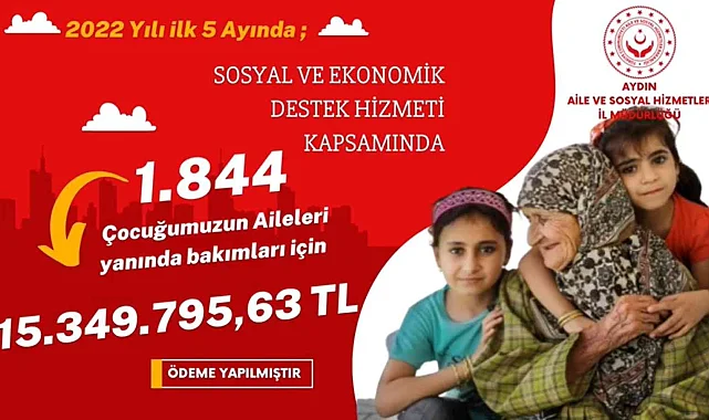 Aile ve Sosyal Hizmetler Bakanlığı tarafından Sosyal Ekonomik Destek (SED) hizmeti çerçevesinde Aydınlı bin 844 çocuğa 2022 yılının ilk 5 ayında 15 milyon 349 bin TL'lik destek ödemesi yapıldı.