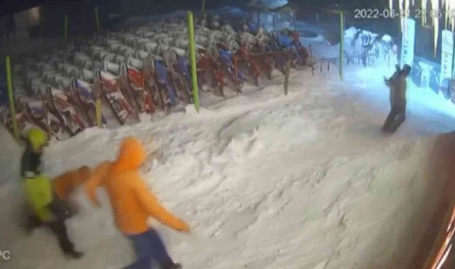 Türkiye'nin en önemli kış turizm merkezlerinden biri olan Uludağ'da 5 arkadaş otelden dışarıya çıkacakları esnada çöp konteynırında, yemek arayan ayı tarafından kovalandılar. Bu anlar otelin güvenlik kamerasına saniye saniye yansıdı.