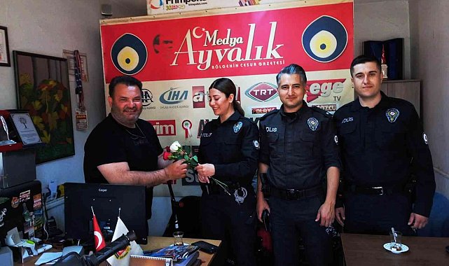 Ayvalık'ın tanınmış haber muhabiri Salgın'ı ofisinde ziyaret eden polis memurları, engelli muhabirin 10-16 Mayıs Engelliler Haftası'nı çiçeklerle kutladı.