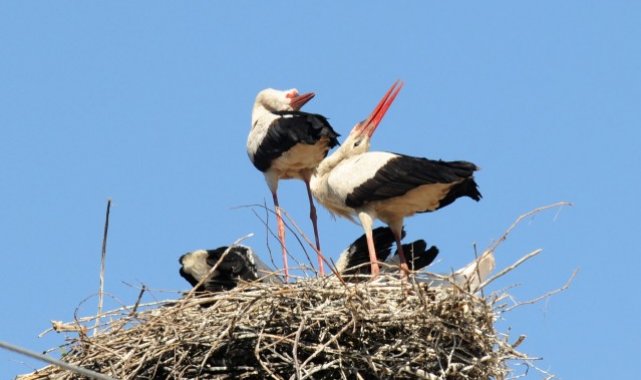 Havaların ısınmaya başlamasıyla birlikte leylekler, Çorum'un Kargı ilçesine gelmeye başladı.