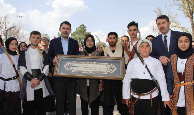 Çevre, Şehircilik ve İklim Değişikliği Bakanı Murat Kurum'a Sivas ziyareti sırasında zırh delen ok ve bir çift Kangal yavrusu hediye edildi.