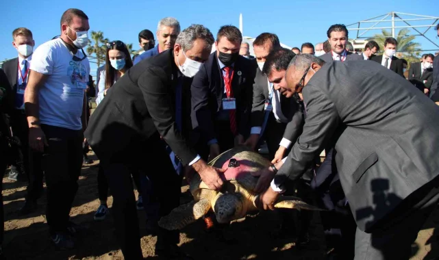 Çevre Şehircilik ve İklim Değişikliği Bakanı Murat Kurum ile Milli Eğitim Bakanı Mahmut Özer, Antalya'da devam eden Akdeniz'in Kirlenmeye Karşı Korunması Sözleşmesi'nin 22. Taraflar Konferansı (COP 22) kapsamında tedavisi tamamlanan 2 caretta caretta cinsi deniz kaplumbağasını suya bıraktı.