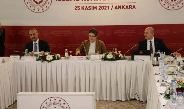 Aile ve Sosyal Hizmetler Bakanı Derya Yanık, Adalet Bakanı Abdulhamit Gül ve İçişleri Bakanı Süleyman Soylu, Ankara Hakimevi'nde düzenlenen 15. Kadına Yönelik Şiddet İzleme Komitesi Toplantısı'na katıldı. Toplantıda konuşan Bakan Yanık, kadına karşı şiddetin önlenmesi için birçok proje yürüttüklerini ve mağdur olan kadınların bakanlık tarafından hiçbir zaman yalnız bırakılmadığını, devletin her zaman şiddet mağdurlarının yanında olduğunu belirtti. Kadına karşı şiddetle mücadelede toplumsal normların da etkin rolü olduğuna değinen Bakan Yanık, "Yasal düzenlemelerin ötesinde toplumsal farkındalığın önem kazandığı bir noktadayız. Öyle ki insanı hayata hazırlayan bütün kurumların hakkaniyet anlayışı kazanması, unuttuğu değerleri hatırlaması gerekiyor. Tam da bu sebeple biz kadınların haklarına ve eşit imkânlara ulaşmasını bir çatışma alanı olarak görmediğimizi özellikle vurguluyoruz. Bu bir yarış değildir. Bu bir hak teslimidir ve önemlidir. Bu hak teslimini gerçekleştirmek de hepimizin boynunun borcu diye düşünüyorum. Adaletin sağlanması, farklılıklar arasında kurulan birliğe dayanır. Farklı ihtiyaçlara hak ettiği imkânları sunamayan sistemler toplumda ayrımcılık ve haksızlık yaşanmasına yol açarlar. Dolayısıyla fırsatlara eşit düzeyde erişim toplum hayatında bir birlik ve huzur ortamı tesis edecek, çatışma ve şiddeti dışarıda bırakacaktır. Bu anlamda çalışmalarımız yalnızca kadınları değil, dezavantajlı bütün grupları kapsamaktadır" diye konuştu.