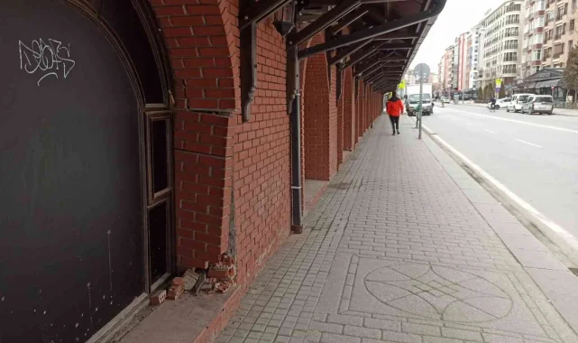 Eskişehir'de günde binlerce kişinin önünden geçtiği ve turistlerin ziyaret ettiği Haller Gençlik Merkezi'nin duvarı onarılmayı bekliyor.