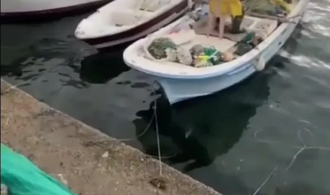 Türkiye'de nesli tükenmekte olan yaban hayvanları listesinde yer alan ve bilimsel adı 'lutra lutra' olan su samuru kent merkezinde bir balıkçı tarafından beslenirken görüntülendi.